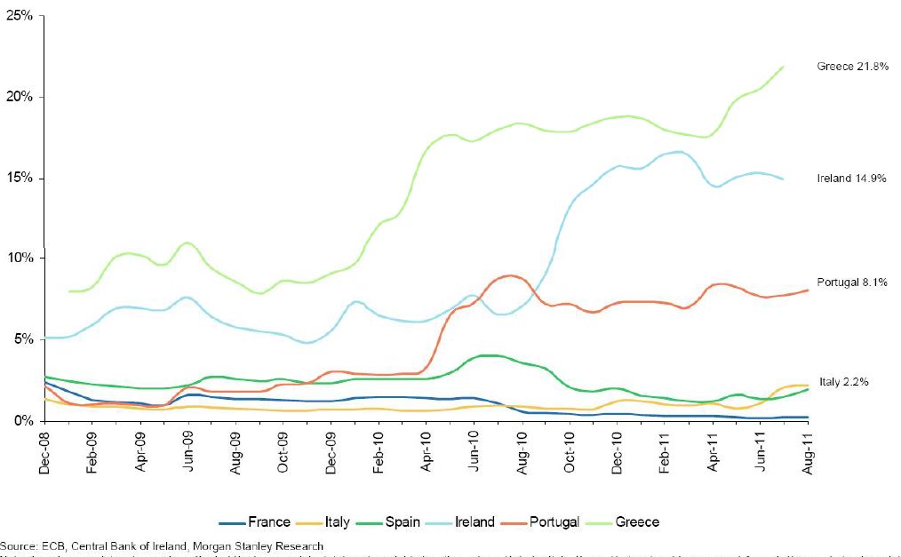 EU-maissa kaikkein vaikeinta on niellä uuden massiivisen pankkituen kustannukset. Finanssikriisin aikana pankit saivat Euroopassa ja Yhdysvalloissa satoja miljardeja julkista tukea. Amerikkalaiset ovat jo ehtineet ostaa itsensä vapaaksi valtion omistuksesta, mutta Euroopassa valtio on edelleen monen suurpankin omistaja. Yksi niistä eli ranskalais-belgialainen Dexia on käytännössä vararikossa. Englannissa pelätään valtio-omisteisen Royal Bank of Scotlandin (RBS) tarvitsevan rajusti lisää pääomaa. Saksassa ja Ranskassa valtiolla on myös sylissään isoja ongelmapankkeja.