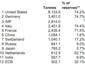 Jotkut asiantuntijat uskovat, että Kiina pyrkii vähitellen ostamaan kultaa niin paljon, että se ohittaa Yhdysvallat, jolla on hallussaan 8 134 tonnia kultaa, arvoltaan noin 380 miljardia dollaria.