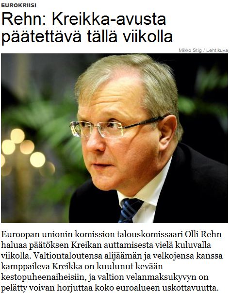 Talouskomissaari Olli Rehnin mukaan eurokriisi on ratkaistava kymmenessä päivässä tai muuten hukka perii. Kuulostaa kumman tutulta. Miksi poliitikot asettavat itselleen aikarajoja ja ansoja, jotka laukeavat aina markkinoiden myllerrykseen?