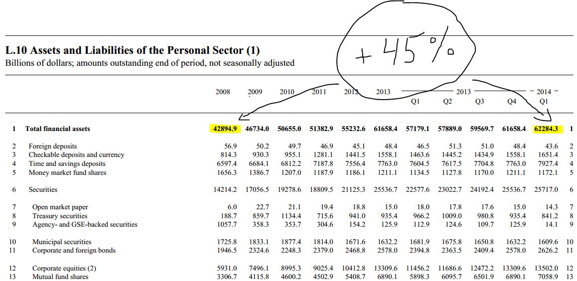 Amerikkalaisten finanssivarallisuus on kasvanut pörssikurssien mukana ja keskupankin tuella 45 prosenttia vuodesta 2008.