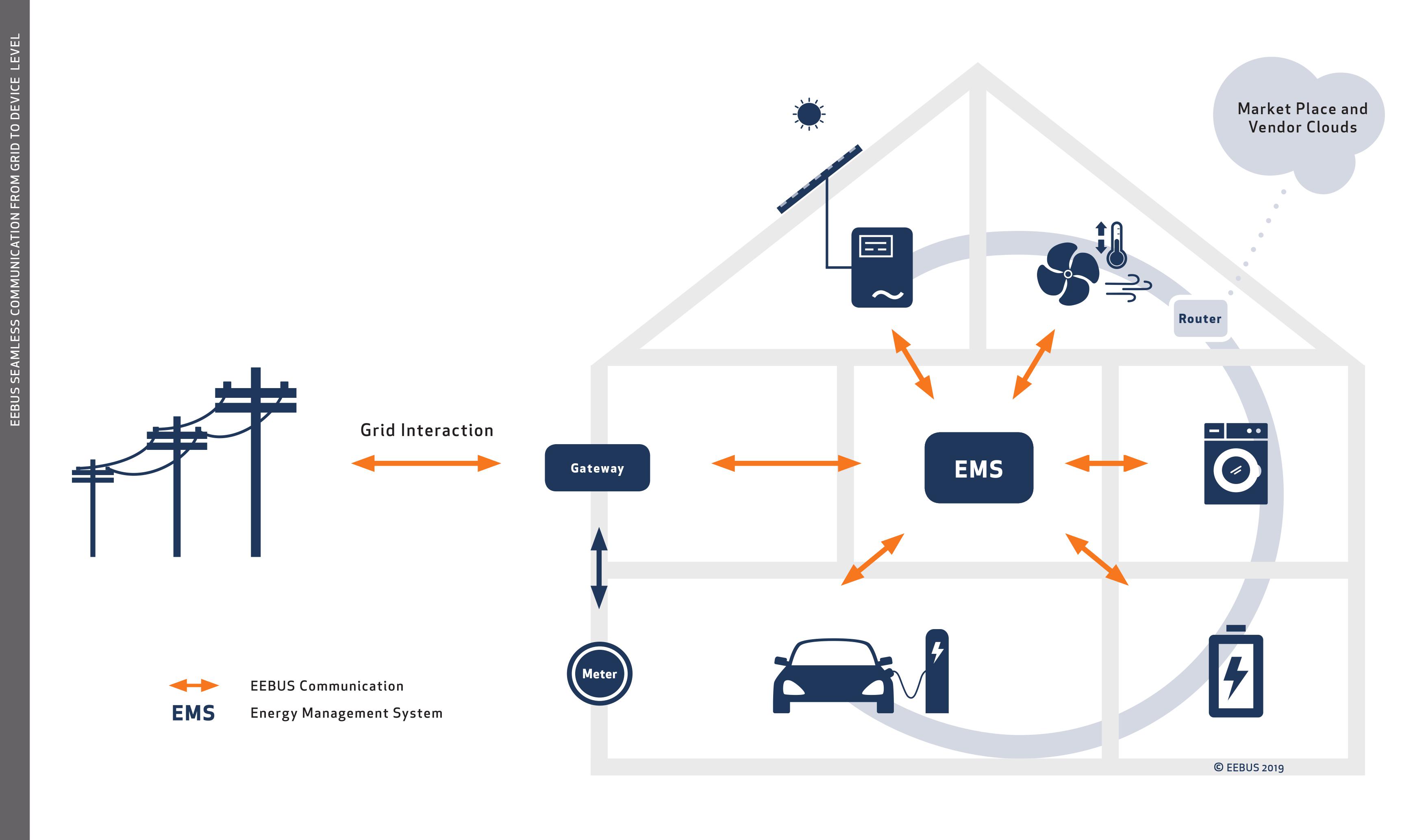 Jotta sähköjärjestelmä toimisi mahdollisimman tehokkaasti, kulutus- ja tuotantodatan pitää siirtyä saumattomasti älykkään sähköverkon, tietoverkkojen sekä kotitalouksien ja rakennusten yksittäisten laitteiden välillä. Tällaisia järjestelmän osia ovat aurinkosähköjärjestelmät, akut, lämmitys, sähköauto ja periaatteessa kaikki sähköllä toimivat laitteet.