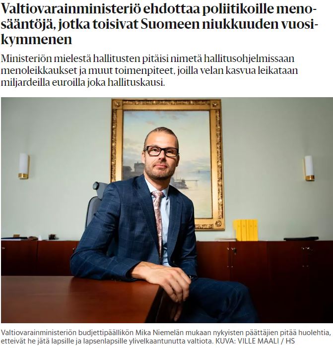 Valtiovarainministeriö haluaa pysäyttää Suomen velkaantumisen. Se vaatisi noin kymmenen miljardin euron säästöohjelman kahden vaalikauden ajaksi. Leikkauslistoista on puhuttu 30 vuotta, mutta velkavuori vain kasvaa, eikä teoissa päästä puheita pidemmälle.