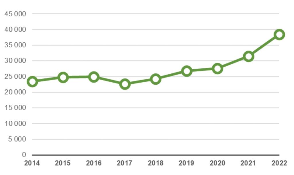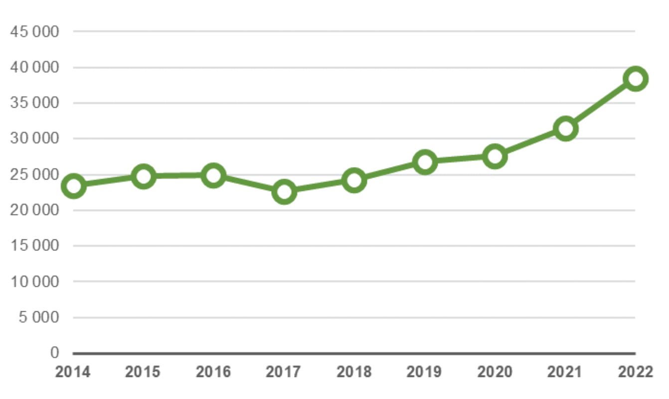 Yli 180 vuorokautta hoitoa odottaneiden määrä on THL:n tilastojen mukaan kymmenkertaistunut vuodesta 2014, jolloin jonossa oli vajaat 2 000 henkilöä, vuonna 2022 määrä oli jo liki 21 000. Hoitoa 91–180 vuorokautta odottaneiden määrä on vastaavasti lähes kaksinkertaistunut ja lähestyy 40 000 rajaa.