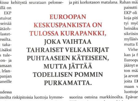 Kirjoitin kuusi vuotta sitten Arvopaperi-lehteen kolumnin otsikolla ”EKP – Euroopan kurapankki”. EKP oli silloin aloittanut ensi kertaa mittavat […]